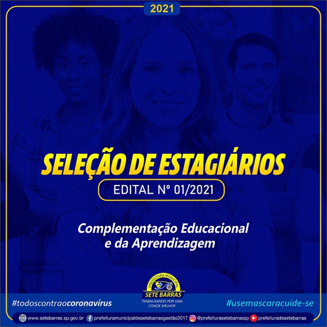 O Município de Sete Barras SP, sob a égide da Lei Municipal n. 1.908/2018, tornam público a abertura de Processo Seletivo simplificado para cadastro de interessados, na qualidade de estagiários, para executar as funções inerentes à respectiva formação do interessado junto aos órgãos Municipais, conforme dispõe o presente Edital e seus anexos.