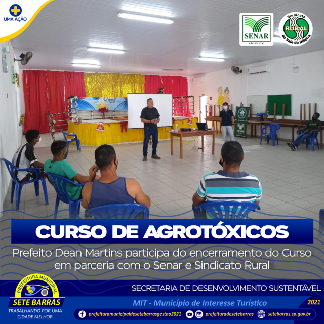 Parceria entre a Prefeitura de Sete Barras por meio da Secretaria de Desenvolvimento Sustentável, o SENAR-SP e o Sindicato Rural do Vale do Ribeira resultou no encerramento do Curso de Aplicação Segura e Correta de Agrotóxicos e o Sindicato Rural do Vale do Ribeira aos agricultores de Sete Barras.