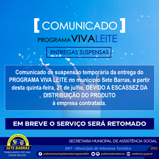 PROGRAMA VIVA LEITE SUSPENSO TEMPORARIAMENTE