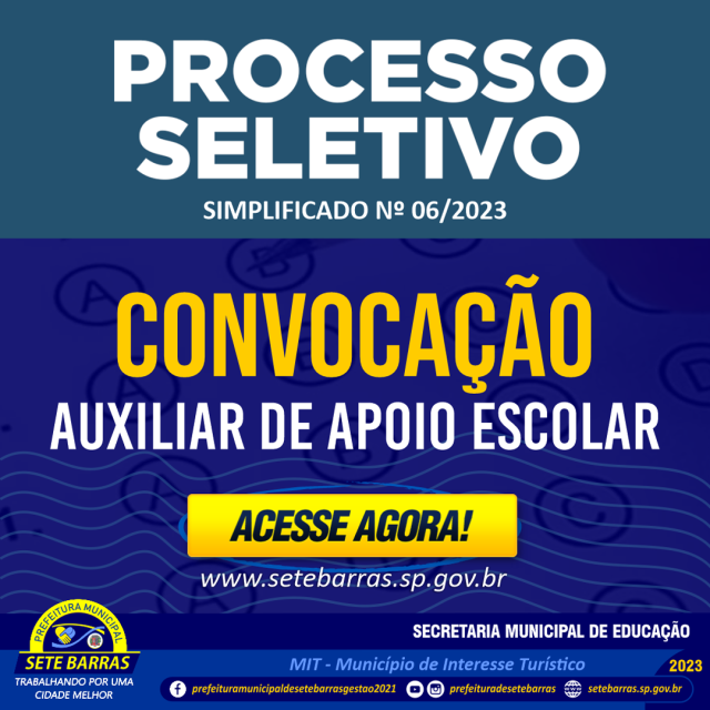 Dean Alves Martins, Prefeito do Município de Sete Barras, Estado de São Paulo, usando de suas atribuições legais e tendo em vista o resultado final do Processo Seletivo Simplificado visando à contratação temporária e por tempo determinado de profissionais necessários à oferta de serviços públicos à população de Sete Barras, resolve: