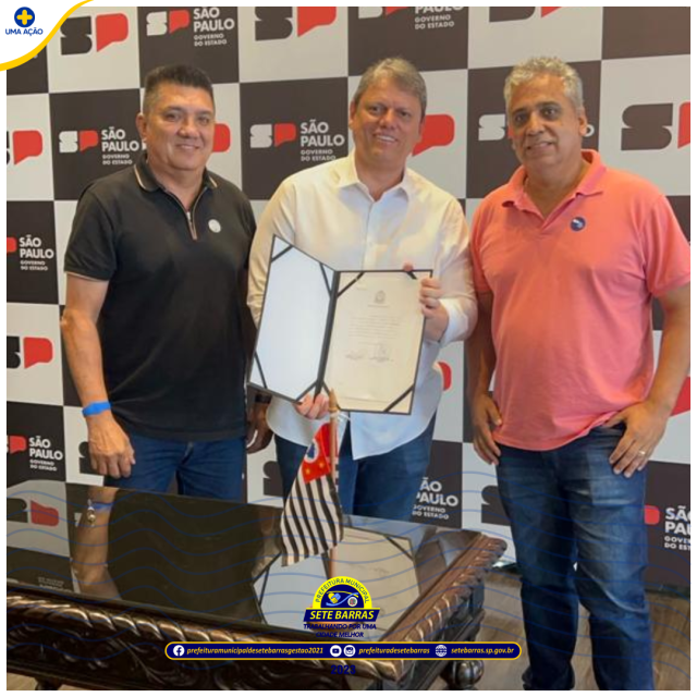Na manhã desta sexta-feira (15/12) o Prefeito Dean Martins acompanhado pelo Secretário de Planejamento, Obras e Projetos Sérgio Muniz, esteve em São Paulo no Palácio dos Bandeirantes com o Governador Tarcísio de Freitas e o Secretário de Governo, Giberto Kassab assinando mais um importante convênio para infraestrutura em Sete Barras, o valor de R$ 200.000,00 (Duzentos mil reais) serão investidos na substituição de luminárias de vapor de sódio para luminárias Led, beneficiando os Bairros Tibiriçá, Centro, Jardim Nossa Senhora Aparecida e Jardim Magário.