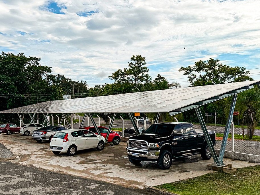 solares distribuídas entre a cobertura do estacionamento e a cobertura da