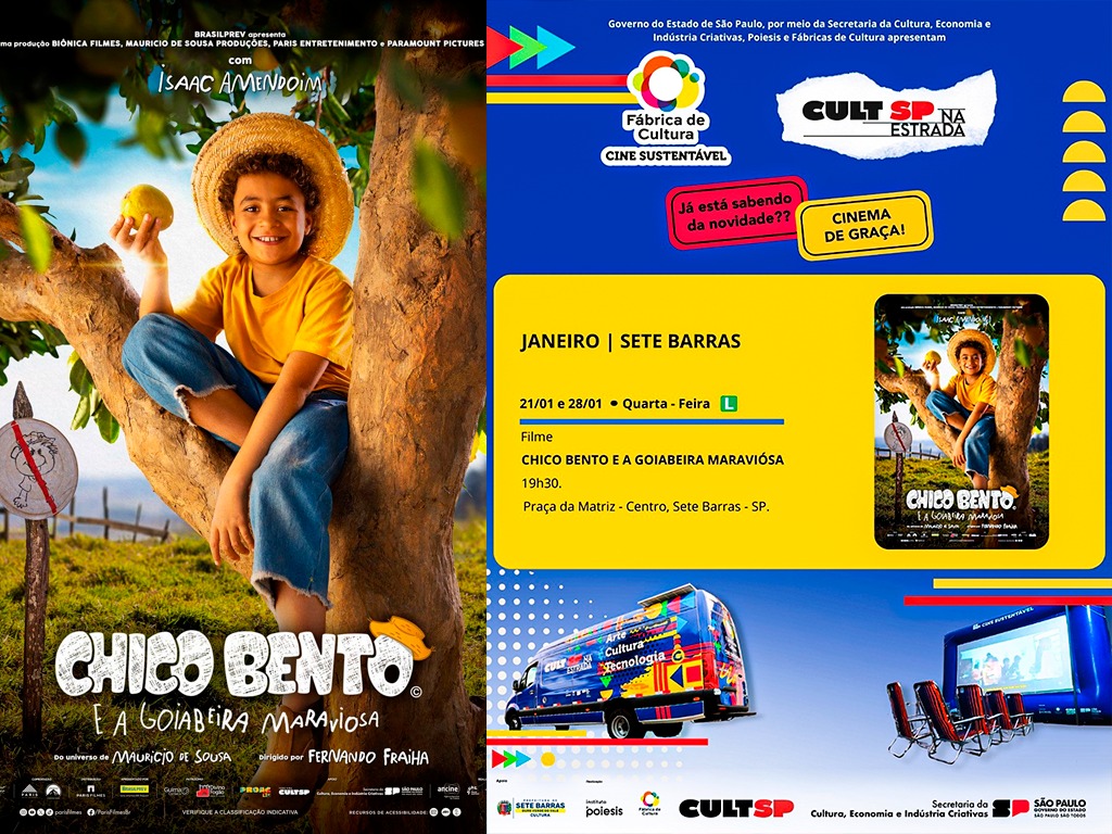 Nas duas datas, o público poderá acompanhar a exibição do filme “Chico Bento e a Goiabeira Maraviosa”, sempre às 19h30, na Feira da Lua. A programação proporciona uma experiência cultural especialmente voltada às crianças que estão em período de férias escolares, além de momentos de lazer e convivência para toda a família.
