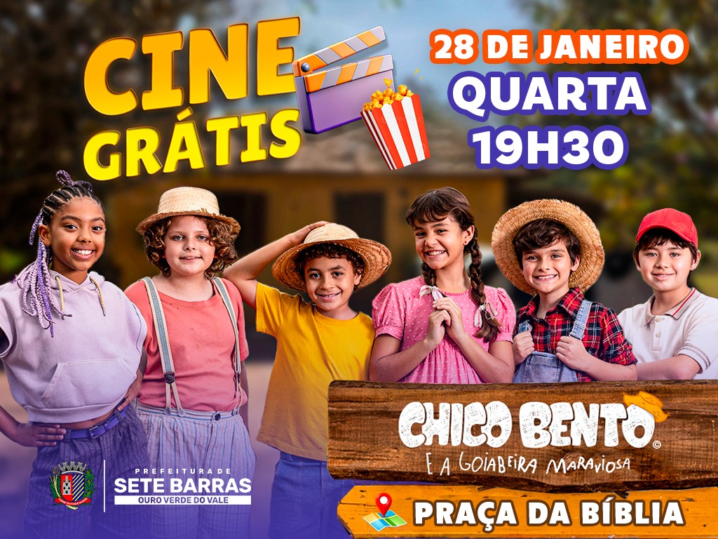 A Prefeitura de Sete Barras promove, nesta quarta-feira (28 de janeiro), a última sessão do cinema ao ar livre com a exibição gratuita do filme “Chico Bento e a Goiabeira Maraviosa”, em um local diferente, ampliando o acesso da população às ações culturais no município. A sessão acontece às 19h30, na Praça da Bíblia, no Jardim Magário, próximo à UBS da Vila São João, e integra a programação especial de férias escolares, oferecendo lazer, cultura e entretenimento para crianças e famílias.