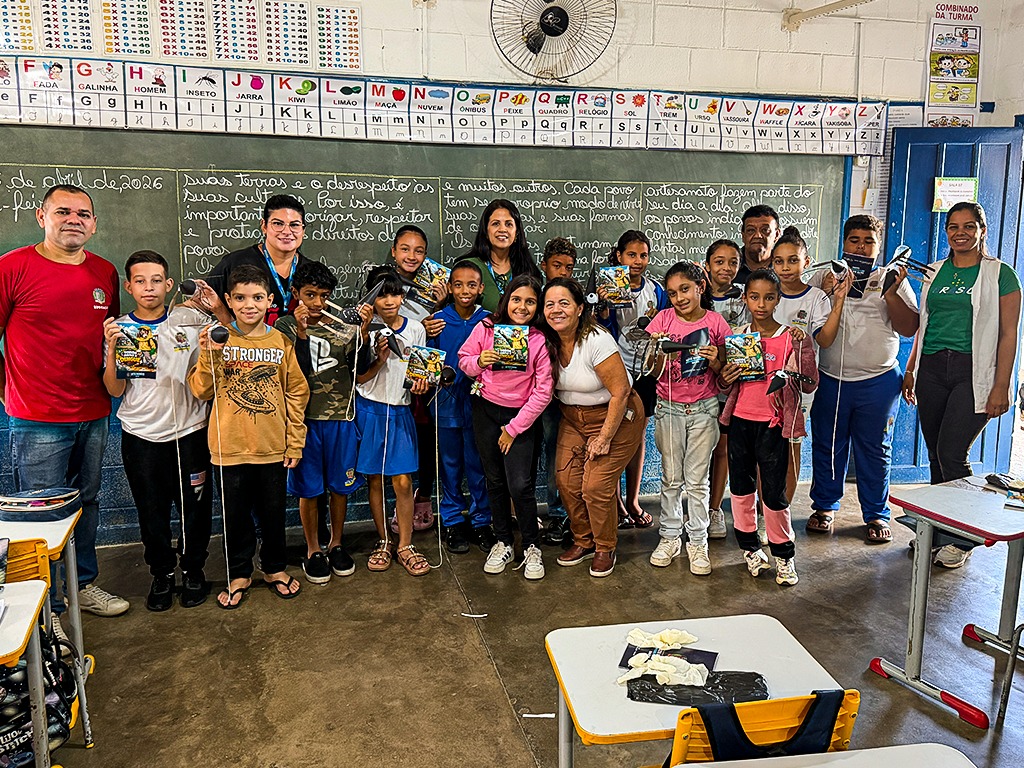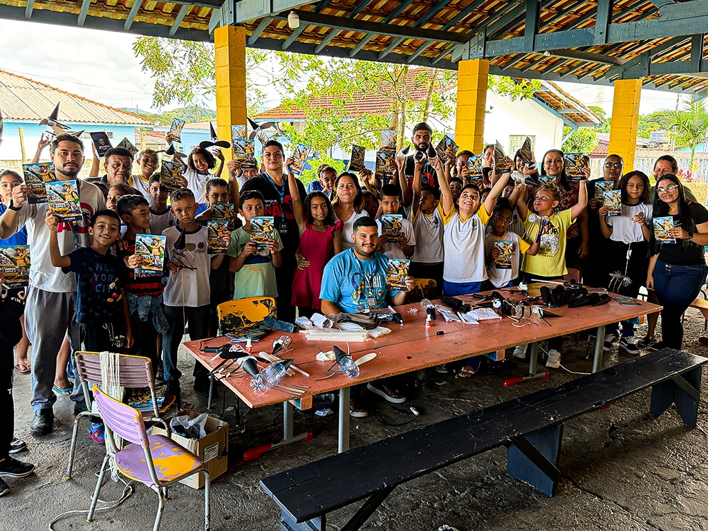 disso, os alunos participam de uma ação prática com a confecção do mosquito da