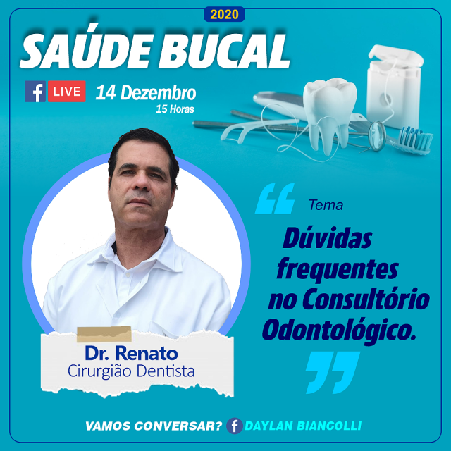 Ultima Live da Programação da Secretaria Municipal de Saúde de Sete Barras, abortará o tema: Dúvidas frequentes no Consultório Odontológico, será realizada na próxima segunda-feira, dia 14 de dezembro a partir das 15 horas na responsabilidade do Dr. Renato. A transmissão será pelo facebook na nutricionista Daylan Biancolli, assista e fique por dentro das ações que irão te auxiliar a ter uma vida mais saudável.